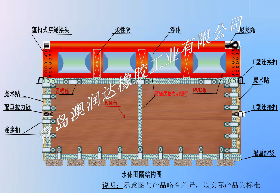 鸿泰海洋装备水体围隔软帘结构图